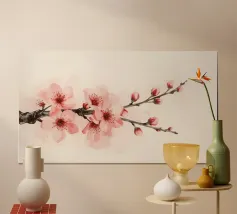 This delicate cherry blossom motif captures the poetic beauty of spring in an impressive way. The soft pink blossoms stand out harmoniously against a warm, soft background and create a calm, soothing atmosphere. This photograph is perfect for adding a relaxed and romantic touch to rooms. Whether in the living room, bedroom or office, the mural creates an oasis of calm and adds a touch of natural elegance and style to your home. Ideal for anyone who wants to enjoy the feeling of spring in bloom with a timeless aesthetic.