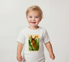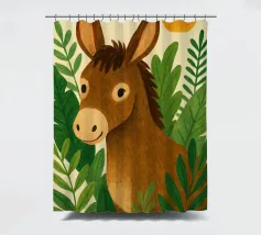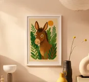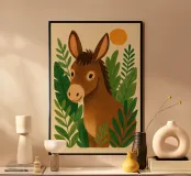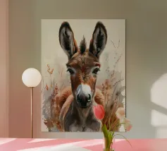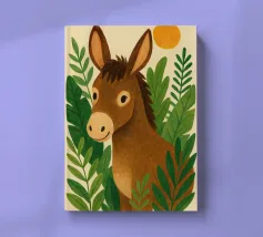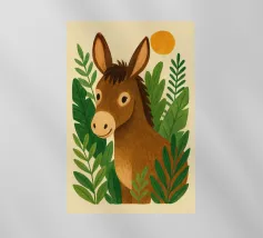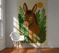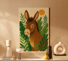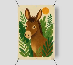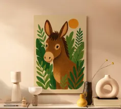 This charming poster shows a gentle donkey surrounded by foliage against a warm, calming background. With its natural look and soft colours, it brings a calm but lively atmosphere into the children's room.