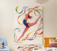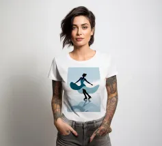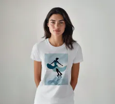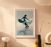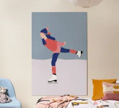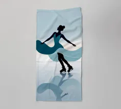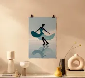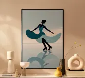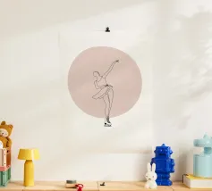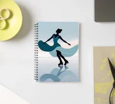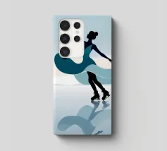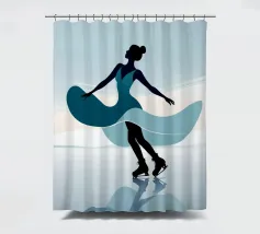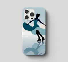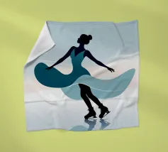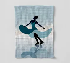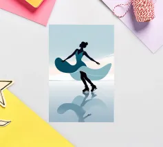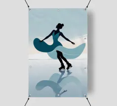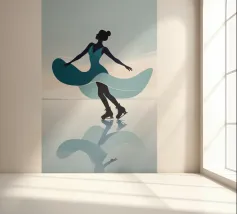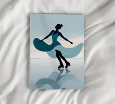 A minimalist portrayal of a figure skater mid-twirl, her dress flowing like soft wind. Cool blues and gentle light evoke the calm beauty of frozen mornings and silent rinks.