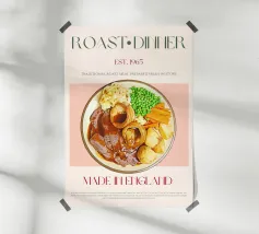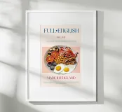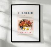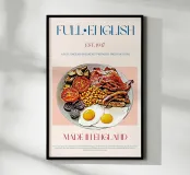 Set on a neutral, cream background, this elegant illustration of the famous full English breakfast adds sophistication to any kitchen, cafe or dining area. This minimalist yet informative design will spark conversation in any setting, adding a refined touch to your environment.