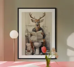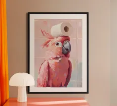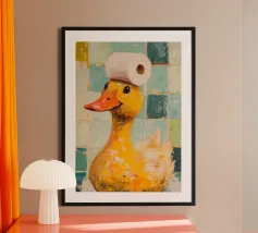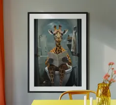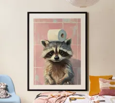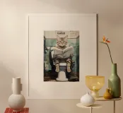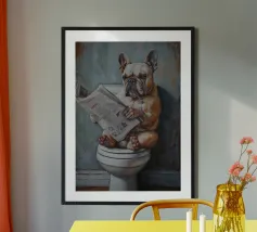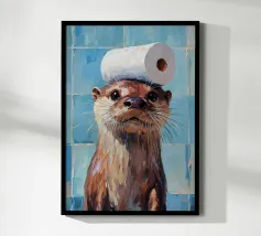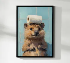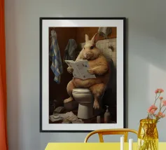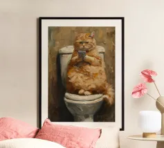 Funny Bathroom Cat poster with aluminum frame