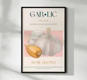 Set on a neutral, cream background, this elegant illustration of garlic adds sophistication to any kitchen, cafe or dining area. This minimalist yet informative design will spark conversation in any setting, adding a refined touch to your environment.