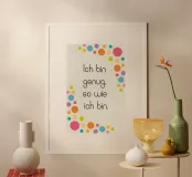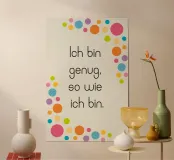 Elevate your space with the "Genug" poster from AESTHETIC VIBES by Isabel. This charming piece features an uplifting affirmation set against a delightful backdrop of colourful, playful dots. Perfect for enhancing your bedroom, living area, or office, it boosts your mood and inspires confidence every day. Made from high-quality materials, it stands out in any decor style, whether modern or cosy. Gift it to a friend who needs a little motivation or treat yourself to a daily reminder that you are enough, just as you are! Ideal for those who appreciate art that speaks to the heart, this poster is a must-have for art lovers and positivity seekers alike!