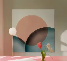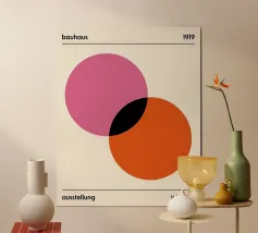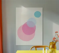 Embrace the aesthetic of modern design with this striking geometric abstract art print. Featuring a captivating composition with two large overlapping circles in contrasting colors, set against a background of solid color blocks (pale pink and magenta/dark pink). This artwork uses simple geometric forms and bold color contrasts to create a visually engaging abstract piece, exploring the interaction of shapes and hues. This high-quality digital art file boasts a stunning 7000x5000 pixel resolution at 300 dpi, ensuring exceptional detail and clarity for your poster print. A perfect piece for des