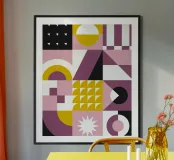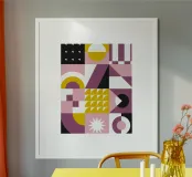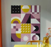 "Geometric Bloom" is a lively interplay of shapes, colours and rhythms. A harmonious interplay of strong mustard yellow, soft pink, deep black and berry tones creates abstract patterns that are reminiscent of organic movements and floral structures. Clear lines meet soft curves and create a visual dynamic that is both modern and timeless.