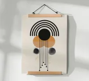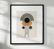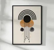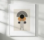 This fascinating design combines precise lines, curved arches and geometric shapes in stylish black and earthy tones. The intricate details and harmonious elements make this motif a highlight for modern living spaces. Perfect for wall murals, T-shirts or home accessories, it creates an elegant balance of minimalism and artistic expression. Ideal for design lovers looking for contemporary and unique decoration.