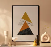 Transform your living space with this stunning 'Geometric Triangles' art print by Orara Studio. Featuring a chic combination of bold triangles in earthy tones and modern textures, this piece makes a stylish addition to any contemporary home. Ideal for the living room, bedroom, or office, it offers an elegant touch that enhances your interior decor.