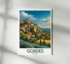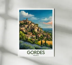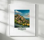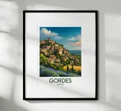 Immerse yourself in the atmosphere of Provence with this poster of Gordes. Perched on a rocky outcrop and surrounded by colourful fields, this emblematic village of the Luberon brings a timeless charm to your wall decor.