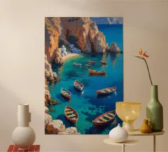 Immerse yourself in the stunning beauty of the Greek landscape with the "Greece" wooden framed art print by NET Talents GmbH. This exquisite piece captures the breathtaking turquoise waters and dramatic cliffs, making it a perfect addition to any space, whether you're sprucing up your living room, bedroom, or office. The vibrant colours and stunning detail bring a slice of paradise right into your home. Ideal for those who love travel, nature, or simply want a striking focal point, this artwork resonates with wanderlust and sophistication. The 10 x 15 cm size is versatile and can fit into various decor styles, from modern to rustic. Plus, the high-quality wooden frame not only enhances the artwork but also ensures durability. Perfect for those looking to gift something unique, or accentuate their own space with a touch of Mediterranean allure!