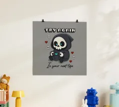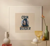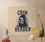 A little reaper sits before a tombstone, wrapped in his dark cloak, fully immersed in reading. The “Grim Reader” pun plays with the words reaper and reader, creating the perfect fusion between the dark and the literary. Perfect for lovers of books, clever humor and a touch of gothic aesthetic!