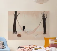 Transform your living space with 'Hammock Vibes', a captivating wooden framed art print by Tabea Jule Photography. Perfect for creating a serene atmosphere in your living room, bedroom, or study, this artwork exudes tranquillity and a sense of escape. Ideal for nature lovers and anyone seeking a peaceful decorative touch.