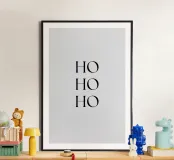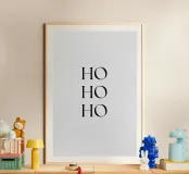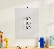 "Add a touch of modern flair to your holiday decor with this minimalist 'Ho Ho Ho' poster. Featuring bold black typography on a solid light background, this artwork is perfect for creating a festive and stylish atmosphere in your home. Ideal as a centerpiece for Christmas celebrations, this unique design combines retro charm with contemporary aesthetics. Perfect for art lovers, holiday enthusiasts, and anyone looking to enhance their space with vibrant seasonal decor. Frame it to elevate your festive setup!"