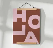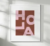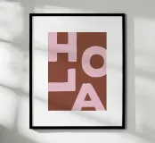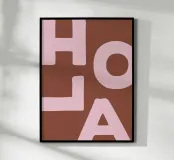 Enhance your living space with this striking wooden framed art print titled 'Hola' by We Line Studio. Featuring a bold, minimalist design in warm browns and soft pinks, it adds a modern touch to any room. Perfect for art enthusiasts looking to spruce up their decor.