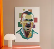 Ibra in WPAP style is a striking geometric portrait that highlights the footballer's bold personality and iconic features. Using vivid colors and sharp polygonal lines, the WPAP (Wedha’s Pop Art Portrait) artwork captures Zlatan’s confident expression and powerful presence, symbolizing his legendary status and fearless attitude on and off the field.