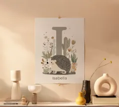 Motif for children with initial and animal. Customisable illustration for the children's room. Ideal as a gift.