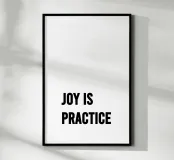 Brighten up your space with the uplifting "Joy" Wooden Framed Art Print by KRUTH DESIGN. Perfect for those who appreciate minimalistic but impactful art, this stunning piece celebrates positivity with the bold statement: 'JOY IS PRACTICE'. Ideal for living rooms, offices, or bedrooms, it not only adds character to your decor but serves as a daily reminder to embrace joy in your life. The sleek wooden frame complements modern and contemporary styles, making it a must-have for anyone looking to infuse their environment with a vibrant, uplifting vibe. Hang it solo or as part of a gallery wall for a chic display. This print also makes a thoughtful gift for friends and family who need a little encouragement. Lightweight and easy to mount, you can quickly transform your space without fuss. Elevate your surroundings with "Joy" today!