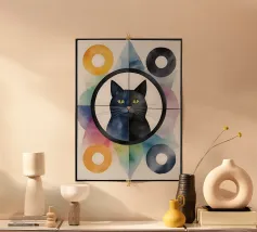 Enhance your room with this stylish wooden framed art print featuring a striking cat design by Cassia Beck Collage. Perfect for cat lovers, this vibrant piece adds a touch of modern elegance to any space, making it ideal for living rooms, bedrooms, or home offices.