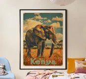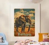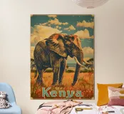 Kenya Elephant Vintage Art poster