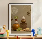 Elevate your kitchen decor with this minimalist wooden framed art print featuring a stylish arrangement of fresh ingredients. Perfect for adding a modern touch to your culinary space, this artwork is crafted with quality materials and designed to inspire your culinary creativity.