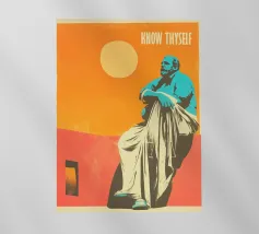 This pop art-inspired poster transforms ancient wisdom into modern graphics - "Know Thyself" in vibrant orange and turquoise tones. The thoughtful philosopher is reminiscent of Warhol's screen prints and vintage travel posters of the 50s. The reduced colour palette and clear typography create contemporary relevance for old teachings. Perfect for anyone who combines intellectual inspiration with retro-modern style - a motivating statement for conscious living spaces.