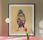 Add a touch of vibrant charm to your space with the 'Kush' poster by Nesill. This unique artwork features a colourful bird design, perfect for brightening up your living room or bedroom. Ideal for art lovers and those looking to infuse a playful spirit into their home decor.