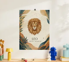 Adorable and playful illustration of the Leo zodiac sign. This fluffy, colorful Leo, surrounded by stars and with a lively expression, captures the sign's warm and proud energy. Perfect for those who love astrology and are looking for a unique and fun touch to their space. Available on various home products and accessories