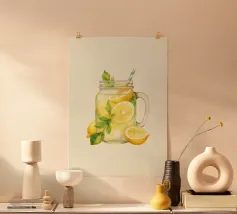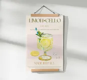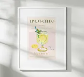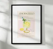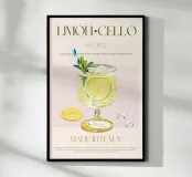 Set on a neutral, cream background, this elegant illustration of the famous Italian cocktail limoncello adds sophistication to any kitchen, cafe or dining area. This minimalist yet informative design will spark conversation in any setting, adding a refined touch to your environment.