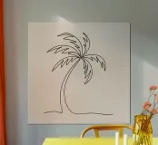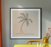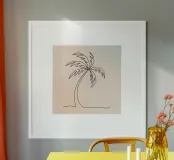 Linear drawing of a palm tree against a pastel backdrop poster with plastic frame