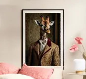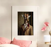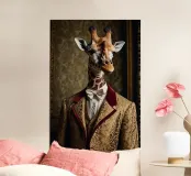 Meet Lord Giraffington, a symbol of grace towering above the aristocracy. Adorned in an elegant suit with velvet accents and a timeless bowtie, his stature isn’t just physical but reflects his wisdom and serenity. Known for overseeing gatherings with a gentle but watchful eye, he is a beacon of refined dignity among nobles and newcomers alike. This portrait adds a sophisticated, whimsical touch, celebrating the majestic and serene, perfect for any elegant space.