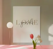 This stylish design with the inspiring message "Love Yourself" reminds us to integrate self-love and mindfulness into our everyday lives. The combination of a simple serif font and flowing handwriting gives the motif an elegant, modern touch. Perfect for wall murals, cushions, mugs or mobile phone cases, this motif brings a positive mood and motivation into your home. With its neutral colours and clean lines, it suits any interior style and makes a wonderful gift for anyone who wants to do something good for themselves or others