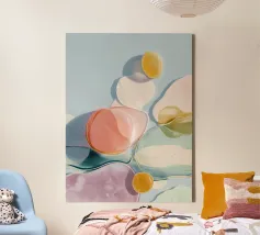 Transform your living space with this captivating abstract poster titled 'Luminous Flow'. Featuring vibrant pastel colours and fluid shapes, this artwork invites a calming yet modern aesthetic to any room. Perfect for those seeking unique wall decor that sparks conversation and enhances creativity.