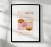 Set on a neutral, cream background, this elegant illustration of the famous French macaron adds sophistication to any kitchen, cafe or dining area. This minimalist yet informative design will spark conversation in any setting, adding a refined touch to your environment.
