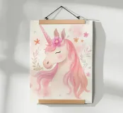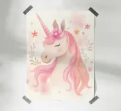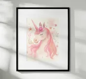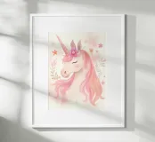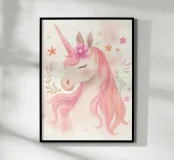 Let your imagination gallop into a dreamy fairytale with this enchanting unicorn illustration. With its flowing pink mane, floral crown, and soft watercolor hues, this artwork blends vintage charm and magical whimsy—perfect for bedroom, kids’ rooms, nurseries, or anyone who adores fantasy creatures and gentle pastel aesthetics.