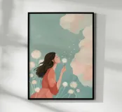 Bring a touch of serenity to your space with our 'Make a Wish' wooden framed art print. This beautifully illustrated piece features a woman surrounded by delicate dandelions, perfect for enhancing a calming atmosphere in bedrooms or personal spaces. An ideal gift for loved ones who appreciate art that inspires dreams and positivity.