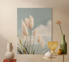 Feine Strukturen, zarte Blumen und fragile Grashalme ziehen sich wie filigrane Adern durch das Bild und schaffen eine beruhigende und dennoch tief bewegende Szene. Die dominierenden Rosatöne verleihen dem Werk eine zurückhaltende Eleganz und laden den Betrachter ein, die Schönheit im Einfachen zu entdecken. Diese minimalistische Komposition flüstert leise von der Vergänglichkeit der Natur und der subtilen, aber kraftvollen Schönheit, die in jedem Moment des Lebens verborgen liegt.