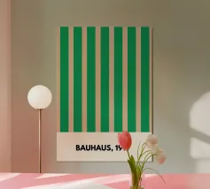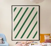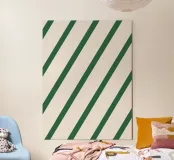 A minimalist pattern of deep green diagonal lines set against a soft, warm cream background. The balanced spacing and steady rhythm create a sense of order, calm, and quiet confidence. Clean and timeless, this design works beautifully in modern, Scandinavian, and contemporary interiors, adding structure without overwhelming the space.