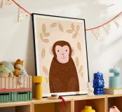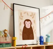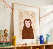 Add a touch of gentle jungle charm to your child’s room with this sweet minimalist monkey illustration. Featuring a softly textured brown monkey with a warm blush face and tiny expressive eyes, this artwork radiates calm, friendly character. Perfect for nursery walls, toddler bedrooms, or a jungle-themed gallery set, this monkey print creates a soothing and playful atmosphere. A lovely gift for new parents or a charming addition to any nature-inspired children’s space.