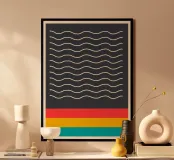 Minimalist Wavy Lines Dark Abstract Color Block Print poster
