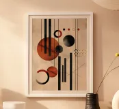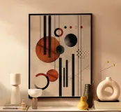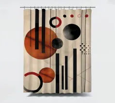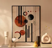 This impressive design combines geometric shapes with a warm colour palette of earth tones, black and red. The combination of vertical lines, circles and curved elements creates a harmonious balance between structure and dynamism. Perfect for murals, mugs, mobile phone cases or cushions - a must-have for modern art lovers who want to add a timeless, artistic touch to their home or everyday life.