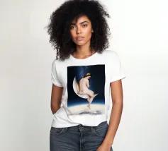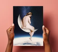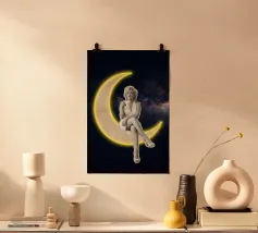 Moonwatcher is a thought-provoking wall art piece that delves into themes of love, connection, and the passage of time. This artwork features a mesmerizing depiction of the moon and her guardian.