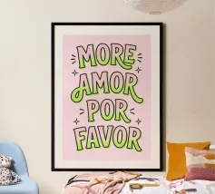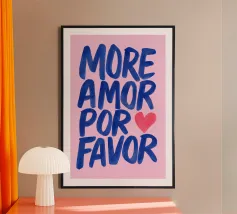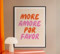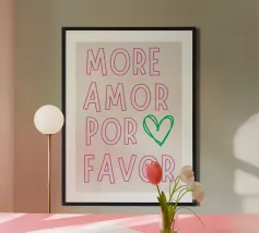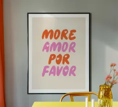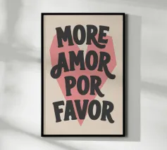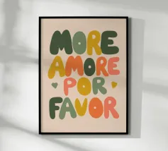 A playful phrase that blends Italian warmth and Spanish rhythm: More Amore Por Favor — “More love, please.” This design brings a gentle smile and a stylish pop of color to any space. Perfect for kitchens, living rooms, or as a sweet reminder that the world always needs a little more love.