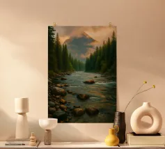 Transform your space with the calming beauty of this stunning poster featuring a crystal-clear stream flowing through a scenic mountain landscape. The gentle rush of water over smooth stones, framed by lush greenery and towering peaks, creates a peaceful atmosphere that invites relaxation and tranquility. Perfect for nature lovers, adventurers, and those who seek a touch of the outdoors in their home, this artwork brings a breath of fresh air to any room. Let the serene charm of this mountain stream infuse your space with a sense of calm and natural beauty.