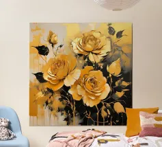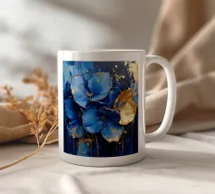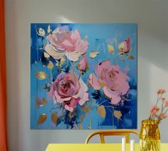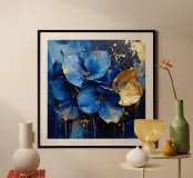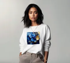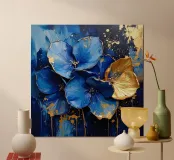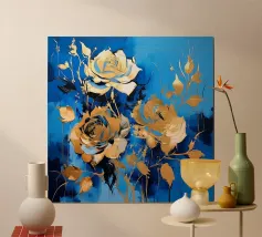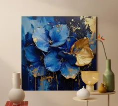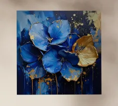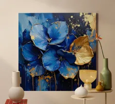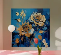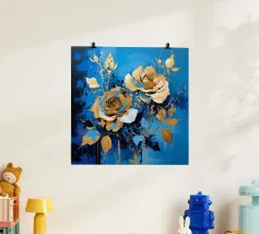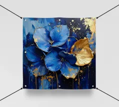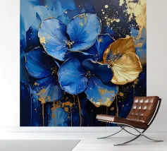 This expressive floral motif poetically combines depth and elegance. In bright shades of blue and white, the flowers unfold like silent thoughts, interspersed with golden accents that symbolise light, value and special moments. The flowing shapes appear lively and calming at the same time – like a gentle breath between the sky and the sea. A sophisticated design that fills rooms with tranquillity, strength and timeless beauty.