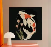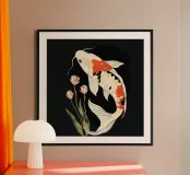 Enhance your space with the stunning 'Noir Koi Study', a captivating wooden framed art print featuring a striking koi fish amidst elegant flowers. Perfect for adding a touch of sophistication to any room, this artwork makes a thoughtful gift for art lovers and those who appreciate aquatic themes.