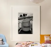 Embrace serenity with this minimalist wooden framed art print featuring the word 'OFFLINE'. Perfect for creating a relaxing atmosphere in your home, this artwork brings a touch of calmness to your living space or office. Ideal as a gift for those who cherish digital detox moments and appreciate simple designs.