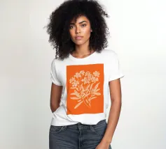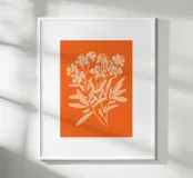 Enhance your home with the striking 'Orange Bloom' wooden framed art print. This minimalist piece showcases elegant floral artistry against a vibrant orange backdrop, perfect for brightening any living space. Ideal for bold decorators seeking stylish wall decor that adds personality to their home.