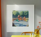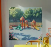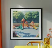 playground filled with colorful slides and play structures poster