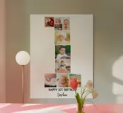 Celebrate your baby's first year with this beautiful 10-photo collage, personalized with their name and special details. A heartfelt keepsake to capture precious memories and milestones, this custom artwork is perfect for nursery decor, first birthday parties, or as a treasured gift for proud parents. Cherish the journey of your little one's first year in style.