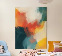 Pleasure warm abstract painting red orange brown summer rough brushstrokes teal