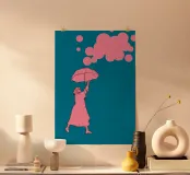A playful illustration of a woman reaching toward a sky filled with soft, floating shapes. Clean lines meet bold colors in a dreamy, modern composition.